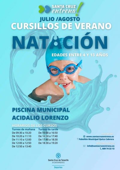 In Santa Cruz werden in diesem Sommer 2.160 Plätze für Kinder von vier bis 13 Jahren angeboten, die das Schwimmen lernen wollen oder ihre Schwimmtechnik verbessern wollen. Die Anmeldelisten sind seit Mittwochmorgen geöffnet und über die Webseite www.santacruzentrena.es erreichbar.