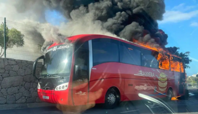 Am Donnerstag gegen 11 Uhr geriet ein Bus in Brand, der gerade durch San Miguel de Abona fuhr. Das Feuer war hinten im Motorraum ausgebrochen. Dank der schnellen Reaktion des Busfahrers konnten alle 29 Kinder den Bus unversehrt verlassen. Die Feuerwehr löschte wenig später die Flammen.