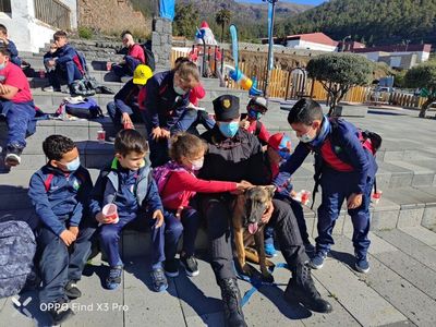 Am vergangenen Wochenende war die Hun-destaffel der Lokalpolizei Adeje im Einsatz, um das Radrennen Teide 360° abzusichern. Erstmals hatten die Hundeführer aber noch einen anderen Termin. Auf der Plaza des San Pedro waren Hund und Führer von 9 bis 13 Uhr zu Gast. Dort konnten Grundschü-ler*innen verschiedene Sicherheitsdienste wie Zivilschutz, Rotes Kreuz, Polizei und eben auch Hundeführer kennenlernen.
