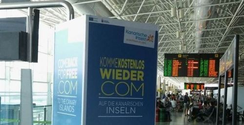 Unter dem Motto “Ven Gratis y Vuelve Gratis“, gibt es jetzt an vielbesuchten Plätzen wie auch auf den Flughäfen große Plakate, welche auf die Aktion hinweisen.