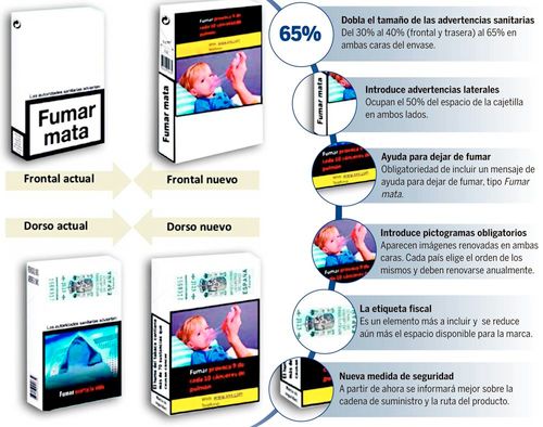 nach welcher noch größere abschreckende Bilder auf die Zigarettenpäckchen gedruckt werden müssen. Hier gibt es ein Zeitfenster von rund 2 Jahren für die Umstellung laut einer Spanischen Verordnung.