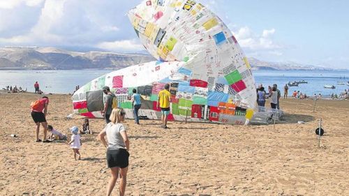 Die aufblasbare Figur soll dort bis zum 17. November bleiben. Dazu wurden 500 alte Plastiktüten zusammengefügt. Unter dem Motto “Biotopías“ will man hier auf die fortschreitende Plastikverschmutzung des Atlantiks hinweisen.