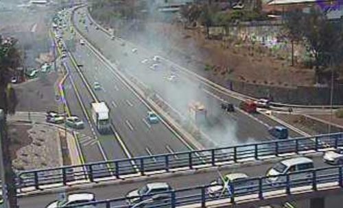 Auf der Autobahn TF bei Ofra brannte beim Km 3 am Montag Nachmittag ein Auto. Das Feuer und die große Rauchentwicklung führten sofort zu nicht unerheblichen Staus.