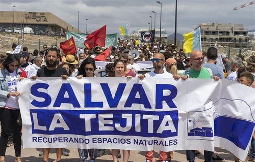 Unter dem Motto 'Salvar La Tejita' protestierten die Teilnehmer gegen den Hotelneubau dort an der Küste.