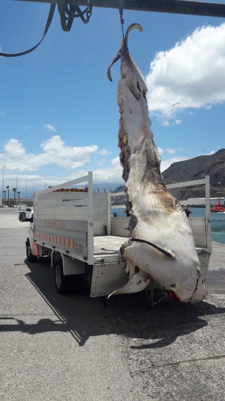 An der Küste des Teresitas Strands fanden Badegäste am Samstag Nachmittag einen toten Wal. Die zuständige Naturschutzabteilung der Regierungsverwaltung ließ das Tier abschleppen um es im Hafen Dársena Pesquera zu bergen.