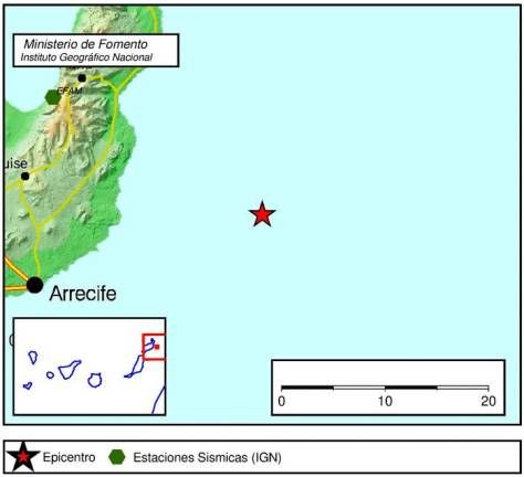 Am Samstag Nacht gegen 22. 40 Uhr registrierte das `Instituto Geográfico Nacional` einen Erdstoß der Stärke 2,9 auf der Richterskala in rund 33 Km Tiefe. Dieser ereignete sich zwischen der Insel Lanzarote im Nordosten und der Insel Fuerteventura im Westen.