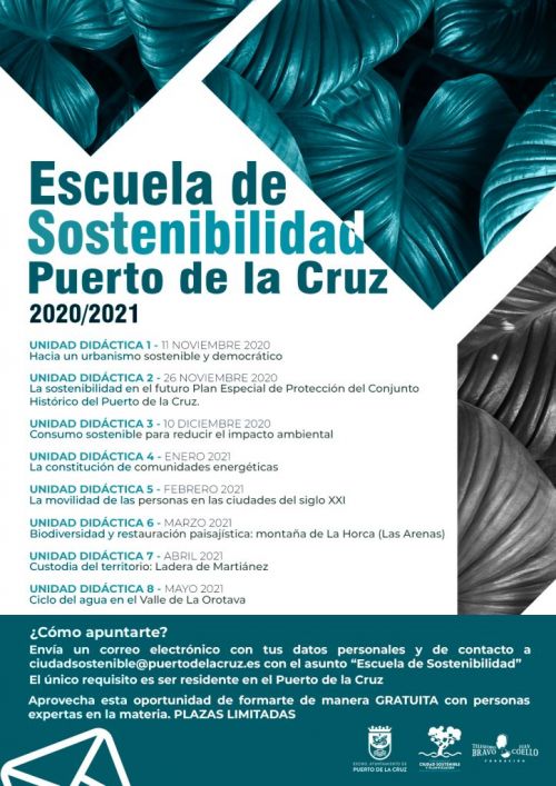 Ein neuartiges Projekt wurde in Puerto de la Cruz ins Leben gerufen – eine Schule für Nachhaltigkeit, die am 11. November beginnt. Dort werden 18 Personen in Theorie und Praxis ausgebildet. Nachhaltige Städte und Entwicklungsmodelle für Puerto de la Cruz sind unter anderem das Thema.