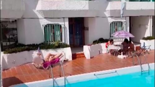 Hier feierten einige Italiener vor ihren Apartments direkt am Pool eine Party.