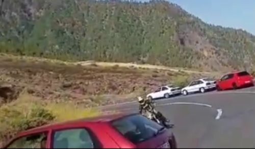 Bereits am 6. September beging ein Autofahrer auf der bei Motorradfahrern bekannten Strecke Los Loros bei Candelaria eine gefährliche Verkehrsmißachtung. In der Kurve am Mirador hatte er seinen PKW so abgestellt, dass er in der Kurve die gesamte Gegenfahrbahn versperrte. Videoaufnahmen belegen, wie ein Motorradfahrer sich nur durch seine schnelle Reaktion und Fahrkunst vor einem Aufprall schützen konnte. Ein Video von diesem Vorfall ging durch die sozialen Netzwerke und wurde auch von der Polizei entdeckt. Sie hat den Fahrer des roten PKWs inzwischen ermittelt und Anzeige wegen einer lebensbedrohlichen Fahrweise erstattet. Es handelt sich um einen 23-Jährigen aus El Tanque.