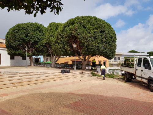 Die Plaza de Llano de Moro in El Rosario wird gerade generalüberholt. Es wird sauber gemacht, Unkraut gezupft und eine neue Beleuchtung installiert.