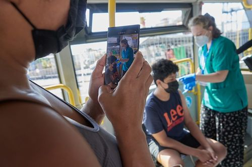 Der Vacuguagua, wie der Impfbus genannt wird, ist auf Tour. Nachdem er am vergangenen Wochenende vor allem in den beiden Hauptstädten unterwegs war, geht er nun über Land auf Tour. Am Freitag wird er an der Playa de las Teresitas auf Teneriffa sein, am Samstag in Radazul und am Sonntag in Candelaria. Auf Gran Canaria sind die nächsten Stationen die touristischen Stadtteile in San Bartolomé de Tirajana und Mogán im Süden der Insel Gran Canarias