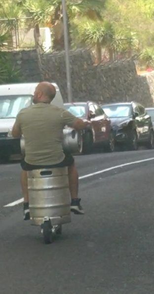 Ein Unbekannter sorgte am Samstag in Santa Cruz für Aufsehen. Er hatte seinen Elektroroller mit einem Bierfass beladen, sich dann daraufgesetzt und noch ein Fass auf die Beine genommen. So fuhr er durch die Straße Calle La Marina in Richtung Avenida Marítimo. „Ist das dein Ernst?“ haben einige ihm zugerufen.