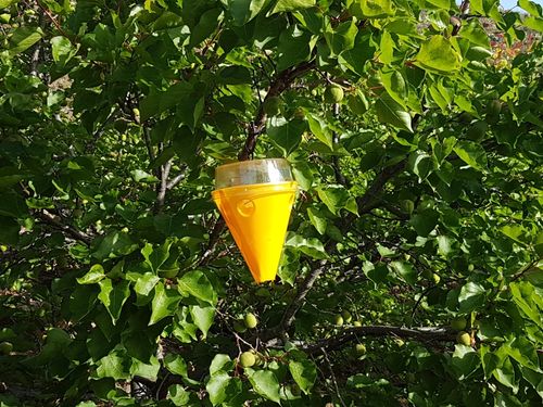 Die Fruchtfliege zählt zu den größten Schädlingen auf den Obstplantagen. Sie befällt Pfirsich-, Aprikosen-, Feigen-, Guaven-, Mango-, Orangen- und andere Obstbäume. Um eine möglichst gute Ernte zu garantieren, verteilt die Inselregierung unter den Landwirten 18.000 Fruchtfliegenfallen. Die Fruchtfliege schädigt die Früchte in ihrer Reifephase. Sie pikst sie an, legt ihre Eier darin ab und die Larven zerfressen dann von innen das Fruchtfleisch.