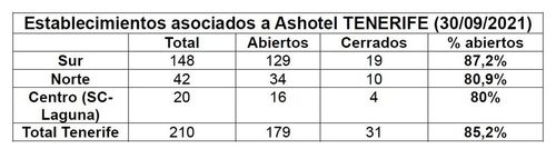 Ende September waren 85 Prozent aller Hotels auf Teneriffa wieder geöffnet. Bis Ende Oktober geht der Hotel- und Ferienverband der Provinz Teneriffa, Ashotel, davon aus, dass 90 Prozent der Häuser ihren Betrieb wieder aufgenommen haben. Die Belegung ist noch nicht zufriedenstellend. Auf La Gomera und El Hierro sind alle Hotels geöffnet und erfreuen sich einer guten Belegung. Auch auf La Palma sind seit Juni alle Hotels geöffnet, wobei eines in Puerto Naos wegen des Vulkanausbruchs wieder schließen musste.