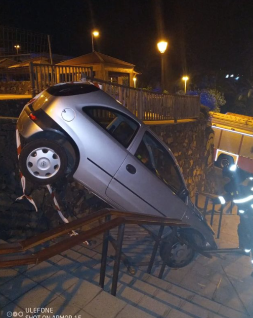Die Feuerwehr von La Orotava musste am Dienstagabend zu einem ungewöhnlichen Unfall ausrücken. Ein Auto war in La Víctoria auf eine Treppe gefahren und drohte abzustürzen. Die Guardia Civil forderte die Feuerwehr an um das Fahrzeug zu sichern.