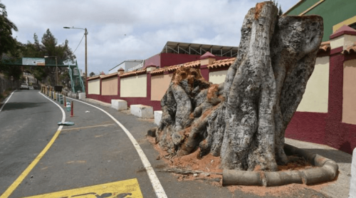 Die rund hundertjährige großblättrige Feige (ficus macrophylla) im Stadtteil San Juan in Las Palmas musste weichen, nachdem einer von drei großen Ästen des Kolosses auf die Fahrbahn gestürzt war. Die Stadt entschied sich allerdings den Stumpf stehen zu lassen. Man will sehen, ob der Baum eventuell wieder austreibt und falls nicht, soll der gigantische Stumpf an den einstigen Baumriesen erinnern.