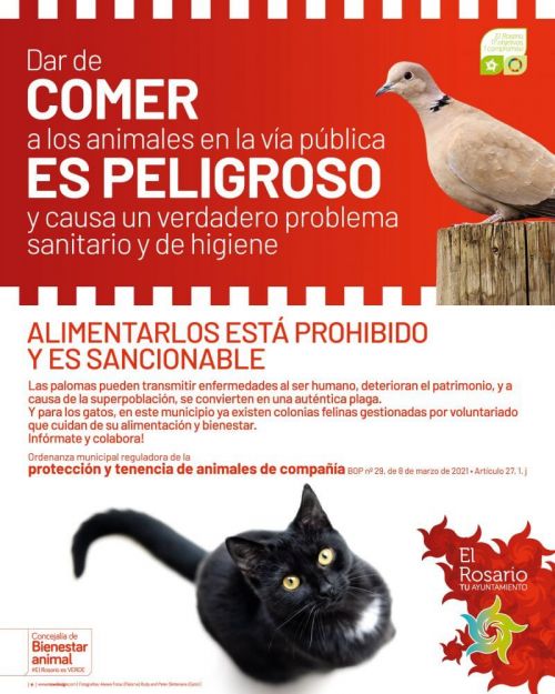 Die Gemeinde El Rosario hat eine Werbekampagne gestartet, in der sie an die Anwohner appelliert, keine Tauben oder wildlebenden Katzen zu füttern, damit die Populationen nicht zur Plage werden. Vor allem bei Tauben führt das gute Futterangebot zu einer stärkeren Vermehrung. Bei den Katzen wies die Gemeinde darauf hin, dass es kontrollierte Populationen gibt, die kastriert sind und die von Freiwilligen versorgt werden. Auch ihre Zahl soll eingedämmt werden.