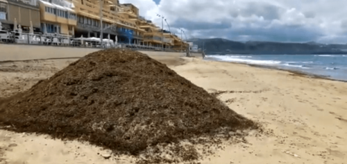 Seit Ende März schwemmt die Flut immer wieder Braunalgen an den beliebten Stadt-strand Playa de las Canteras. Seit dem vergangenen Freitag wurden 119 Tonnen pflanzliches Material zur Müllanlage Salto del Negro gebracht.