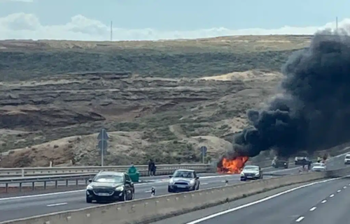 Eine dicke, dunkle Rauchwolke entwickelte sich rund um einen PKW, der am Donnerstagmittag auf der Südautobahn TF-1 auf der Höhe von Poris de Abona in Richtung Santa Cruz in Brand geriet. Zum Glück gab es nur Sachschaden.