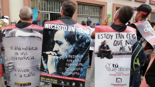 Mitglieder der gemeinnützigen Organisation Cáritas haben sich am Mittwoch vor dem kanarischen Wohnungsbauamt Icavi versammelt und mehr Wohnraum für obdachlose Menschen gefordert. Nach deren Schätzungen sind aktuell rund 3.000 Menschen auf der Insel von Obdachlosigkeit betroffen.