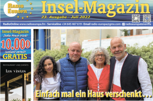 Ab Donnerstag wird das neue Insel Magazin für den Juli verteilt. Lesen Sie, weshalb ein deutsches Ehepaar ein Haus verschenkt. RTL sucht auf den Kanarischen Inseln Bauern für die Sendung Bauer sucht Frau International, im großen Sommer-Spezial gibt es ausführliche Informationen zum Jazz-Festival sowie anderen Freizeitaktivitäten und wie immer viele Informationen und interessante Berichte zu den verschiedensten Themen.