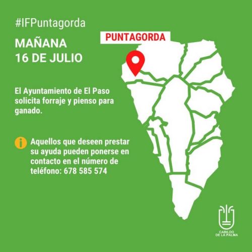 Die Gemeinde El Paso bittet dringend um Futterspenden für Vieh, das vor den Flammen in Sicherheit gebracht werden musste. Wer sich beteiligen möchte, kann sich an die Telefonnummer 678 585 574 wenden.