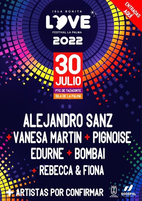 Zum diesjährigen Love- Festival, das am 30. Juli in Puerto de Tazacorte auf La Palma steigen wird, haben weitere bekannte Künstler zugesagt. Vor dem Wochenende bestätigten Alejandro Sanz, Vanesa Martín, Pignoise und die schwedischen DJs Rebecca und Fiona ihre Teilnahme. Karten für das Festival gibt es über tomaticket.es oder bei El Corte Inglés.
