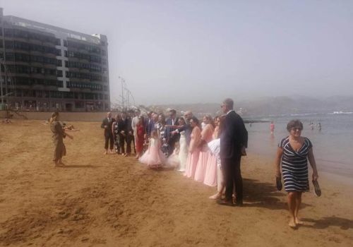 Eine Hochzeitsgesellschaft hat sich am Montag an der Playa Chica am Las Canteras-Strand in Las Palmas versammelt, um dort Hochzeitsfotos zu machen. Wo sonst lustige Badestimmung herrscht, wurde dieses Mal die Liebe zweier Menschen im Bild festgehalten. Die perfekte Kulisse!