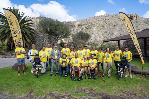… das können ab sofort auch Menschen auf Gran Canaria sein, die auf einen Rollstuhl angewiesen sind. Etwa 60 freiwillige Helfer bieten Ausflüge in die Natur und auf Wanderwegen mit sogenannten Joelettes an, die geländegängig sind. Am Wochenende haben die Helfer im Kaktusgarten den Umgang mit den Dreirädern geübt.