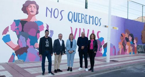 „Wie mögen uns lebendig“ – das ist auf der Mauer zum Fußballstadion in Adeje zu lesen. Ein großes Kunstwerk ziert die Mauer und soll daran erinnern, dass häusliche Gewalt in unserer Gesellschaft nicht geduldet wird.