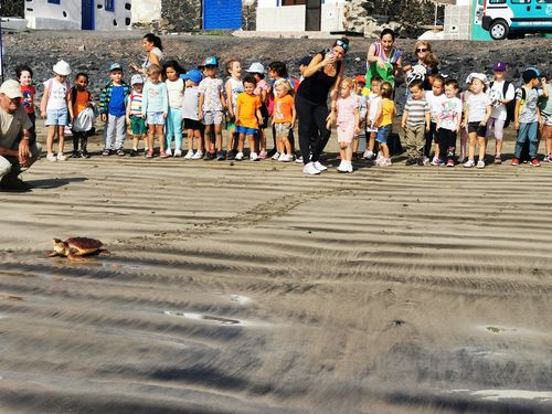 Am Strand im Ortsteil Pozo Negro wurde am Freitag eine unechte Karettschildkröte ins Meer entlassen. Das Tier war verletzt aufgefunden und von Mitarbeitenden des Umweltschutzamtes aufgepäppelt worden. Kinder der Grundschule CEIP Triquivijate und ihre Mütter waren bei der Freilassung dabei. Schnell war das Tier im Atlantik verschwunden und alle wünschten ihr eine gute Reise.