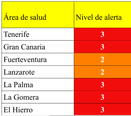 Mit dem Fall der Coronamaßnahmen sind am Montag neue Warnstufen in Kraft getreten. Sie reichen von 0 bis 5 und orientieren sich an der Ansteckungswahrscheinlichkeit und der Belastung der Gesundheitssysteme. Aktualisierungen finden sich auf der Websei-te des Gobierno de Canarias. https://www3.gobiernodecanarias.org/sanidad/scs/contenidoGenerico.jsp?idDocument=83670f95-f738-11ea-8b38-0997195c2925&idCarpeta=e01092c2-7d66-11ea-871d-cb574c2473a4