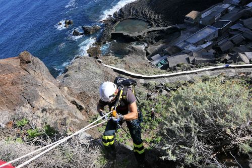 Auf El Hierro wurde am Freitag der Notfall geprobt. Die Eingreiftruppe übte eine Rettungsaktion in schwer zugänglichem Gelände. Die Retter mussten sich zu einer verletzten Person abseilen und sie per Trage bergen. Eine schwierige Aufgabe, die geübt sein will, damit sie im Ernstfall klappt.