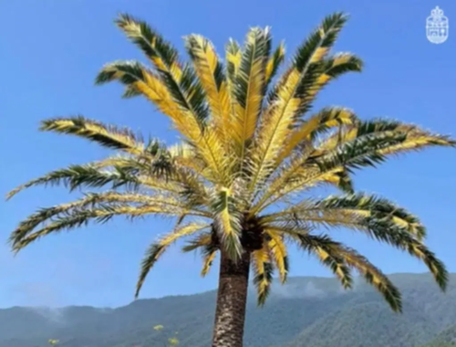 Im Stadtteil Mirca in Santa Cruz steht eine ganz besondere Rarität – eine Albino-Variante der kanarischen Palme. Das gibt es nur sehr selten und sie hat schon manchen Besucher mit ihrer besonderen gelb-grünen Färbung beeindruckt. Kürzlich wurde sie geschnitten und ausgeputzt, damit ihre besondere Schönheit noch besser zum Ausdruck kommt.