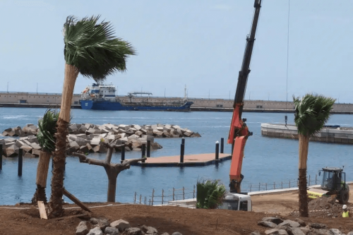 Das Projekt Playa Valleseco in Santa Cruz befindet sich in der Endphase. Schon im Juni sollen die Arbeiten voraussichtlich abgeschlossen und der neue Stadtstrand frei gegeben werden. Die erste von zwei schwimmenden Badeplattformen ist bereits zu sehen.