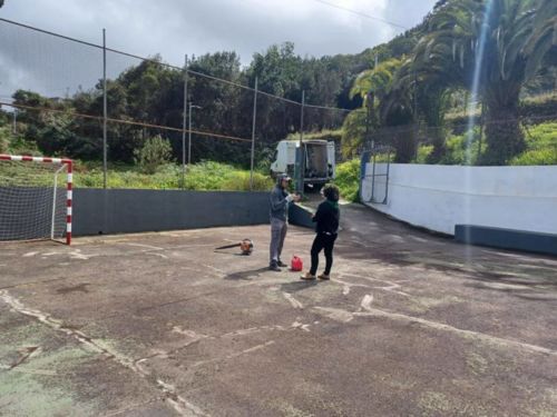 In San Juan de la Rambla wird derzeit der Bodenbelag der Sportanlage im Ortsteil Las Rosas erneuert. Risse werden mit Kunstharz aufgefüllt und der Platz mit hochwertiger Spezialfarbe drei Mal überstrichen.