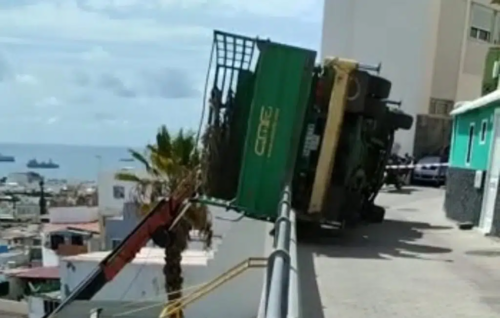 Am Montag hat ein LKW-Fahrer im Stadtteil San Nicolás die Kontrolle über seinen Transporter verloren und eine Leitplanke durchbrochen. Der Transporter blieb in mehreren Metern Höhe in Seitenlage stecken. Glücklicherweise kamen alle nur mit einem Schrecken davon.