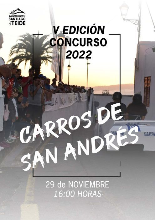 Zum fünften Mal wird in Santiago del Teide zu San Andrés die schönste Seifenkiste prämiert. Anmeldungen werden bis zum 28. November entgegen genommen. Die Schau findet am 29. November in Arguayo statt. Mitmachen können Residente in drei Alterskategorien: Vier- bis Elfjährige, Zwölf- bis 18-Jährige und 19- bis 30-Jährige. Erlaubt ist, was gefällt, außer der Einbau von explosivem Material und Show-Effekten.