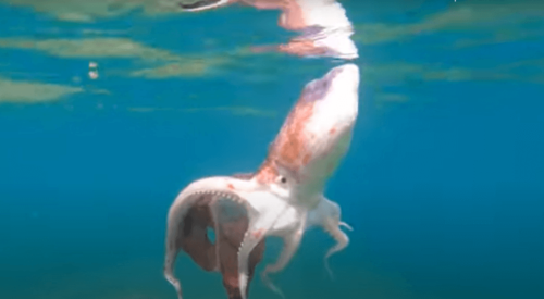 An der Playa Salinetas zog ein Badegast kürzlich ein sehr seltenes Exemplar einer Löcherkrake (tremoctopus violaceus) aus dem Atlantik. Der Krake war dem Tod geweiht. Doch eine Meeresbiologin, die zufällig am Strand war, erkannte dass es sich um einen sehr seltenen Fund handelte. Normalerweise leben diese Tiere auf hoher See in 250 Metern Tiefe. Bei Gefahr können die Weibchen eine zwei Meter breite Membran entfalten. Deshalb werden sie auch Manta-Kraken genannt. Die Biologin nahm das seltene Exemplar zu Forschungszwecken mit an die Universität von Las Palmas. Unter anderem wird das Tier auf Mikroplastik untersucht.