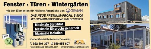Die Fensterbaufirma PVC sucht für Teneriffa Mitarbeiter für den Vertrieb und Montage von PVC Fenstern. Voraussetzung sind handwerkliches Geschick und deutsch/spanisch sprechend. Mehr Infos unter 922/401397 oder 638/021379. Website:procasa-canarias.com