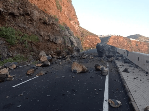 Straßensperre wegen Steinschlag - La Palma-Santa Cruz