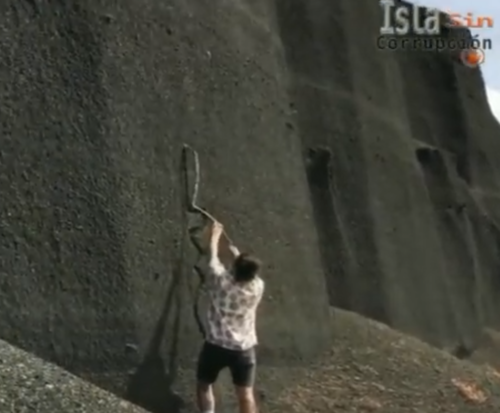 Derzeit kursiert ein Video, auf dem zu sehen ist, wie eine Person in dem antiken Steinbruch Cantera de Tao auf Lanzarote mit einem Stock Zeichen in den weichen Fels schnitzt. Es handelt sich um einen ehemaligen Steinbruch bei Teguise. Aufgrund des landschaftlichen Wertes wurde der Betrieb eingestellt und die Landschaft restauriert. Viele Menschen haben sich darüber empört.