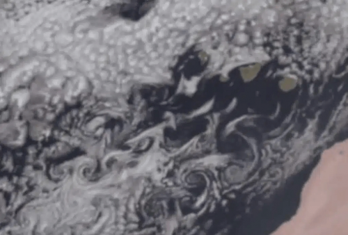 Am Wochenende waren aus dem All die be-rühmten Von-Kárman-Wirbel rund um die Kanarischen Inseln zu sehen. Sie entstehen in Regionen mit subtropischen Antizyklonen, wenn Stratocumulus oder Cumuluswolken vorhanden sind. Immer wieder ist dies ein faszinierendes Wetterschauspiel.