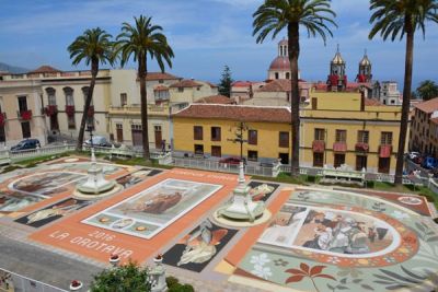 Hier gab es am Donnerstag die Feierlichkeiten zum Corpus Christi Tag. Über 5.500 qm mit 20 Teppichen und 15 Läufern konnten bestaunt werden. Bei schönstem Sonnenschein kamen den ganzen Tag über Tausende von Besuchern. Am Abend gab es die große Prozession, welche dann mit einer Heiligen Messe auf dem Rathausplatz endete.