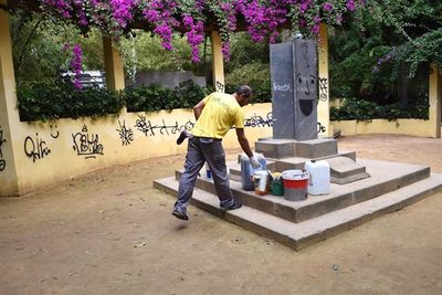Die Stadt Santa Cruz hat jetzt die Gartenbauabteilung beauftragt, im Parque Garcia Sanabria die Vandalismus Schäden zu beseitigen. Hier sind einige Gebäude und auch Denkmäler mit Farbe verschmiert worden. Die Kosten hierfür etwa 3500.--€.