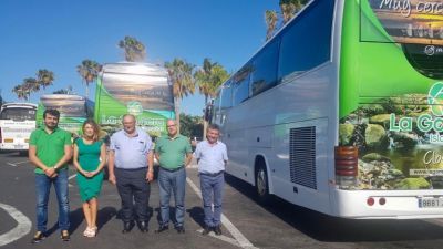 Die Touristikabteilung der Insel La Gomera traf sich mit den Kollegen der Insel Teneriffa auf dem Süd Flughafen, Reina Sofia. Hier stellte man eine neue Werbekampagne vor. Busse von Busunternehmern und auch der TITSA Busgesellschaft wurden mit Werbung von der Insel La Gomera versehen. Diese Busse sind jetzt im Süden Teneriffas unterwegs und sollen Urlauber zu einem Insel Hopping animieren. PG-AR