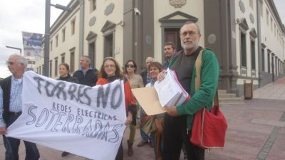 Die Anwohner der Insel Fuerteventura protestieren gegen eine Hochspannungstrasse, welche mit 132 KW quer durch die Landschaft vom Süden in den Norden geht. Der Bau wurde jetzt zunächst gestoppt. Immer wieder gibt es hier Protestkundgebungen. Diese Kabel könnte man auch unterirdisch verlegen, heißt es immer wieder. PG-AR