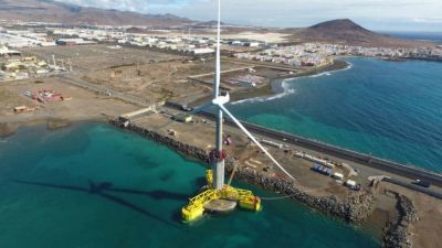 Vor der Küste von Telde auf Gran Canaria soll im Juli die erste Offshore-Windenergieanlage