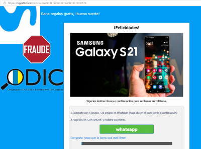 Die Beobachtungsstelle für Cyberkriminalität auf den Kanaren, ODIC, warnt vor einer Phishing-Attacke, die derzeit auf Whatsapp kursiert. Angeblich verlost Movistar anlässlich des 30. Geburtstags in Spanien ein Samsung Galaxy S21. Wer dem Link folgt, muss den Zugriff auf alle Kontakte erlauben, ehe er sich für die Verlosung registrieren kann. Verlost wird natürlich nichts, es geht nur darum, die persönlichen Daten abzugreifen.