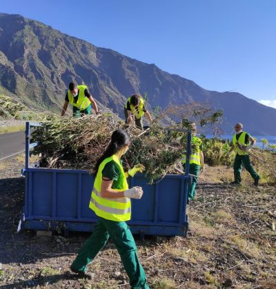 Auf El Hierro wurden in der letzten Monaten 910 Kubikmeter Pflanzenreste von 45 Parzellen in drei Gemeinden abgeholt. Normalerweise werden diese von den Finca-Besitzern verbrannt und dadurch werden Gase in die Atmosphäre abgegeben. Jetzt wurden sie eingesammelt und zu Kompost oder Tierstreu verarbeitet, ganz ohne Verbrennung. Bis 2030 soll das Verbrennen von Pflanzenresten um 20 Prozent reduziert werden.